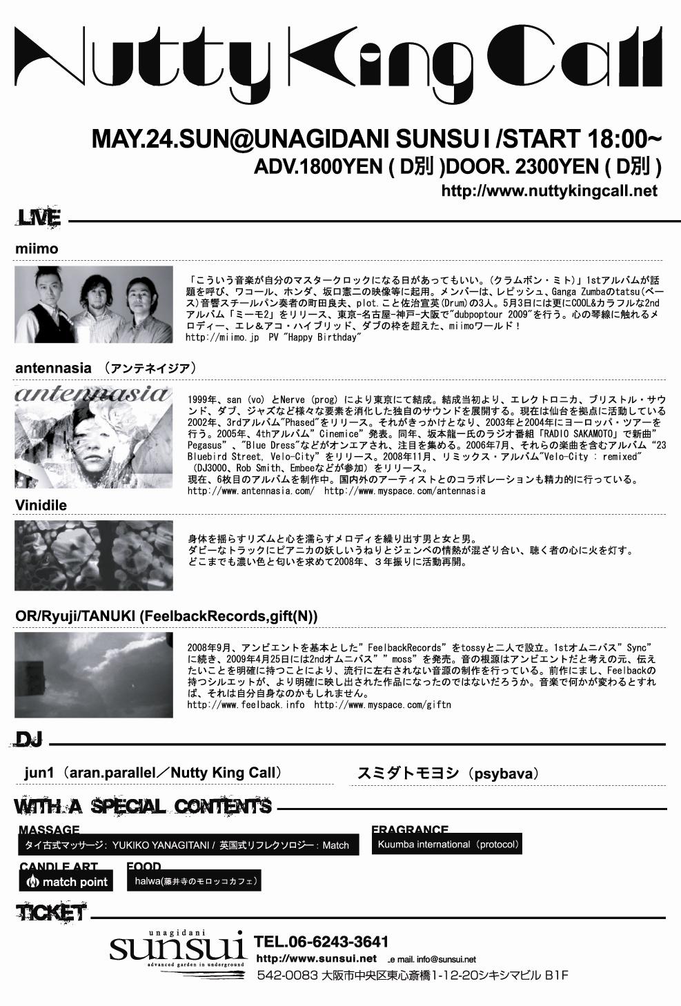 2009/05/24(sun) OPEN/START 18:00 CLOSE 23:00 @鰻谷sunsui (心斎橋)